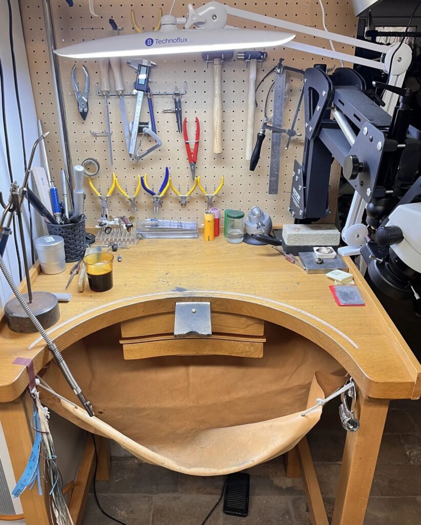 Depuis janvier 2025, elle accueille ses clients dans son propre atelier, un lieu intime où chaque bijou prend forme à la main, avec soin et authenticité. Ici, la création se fait sur mesure : conception de pièces uniques, transformation de bijoux anciens ou restauration délicate de souvenirs précieux.